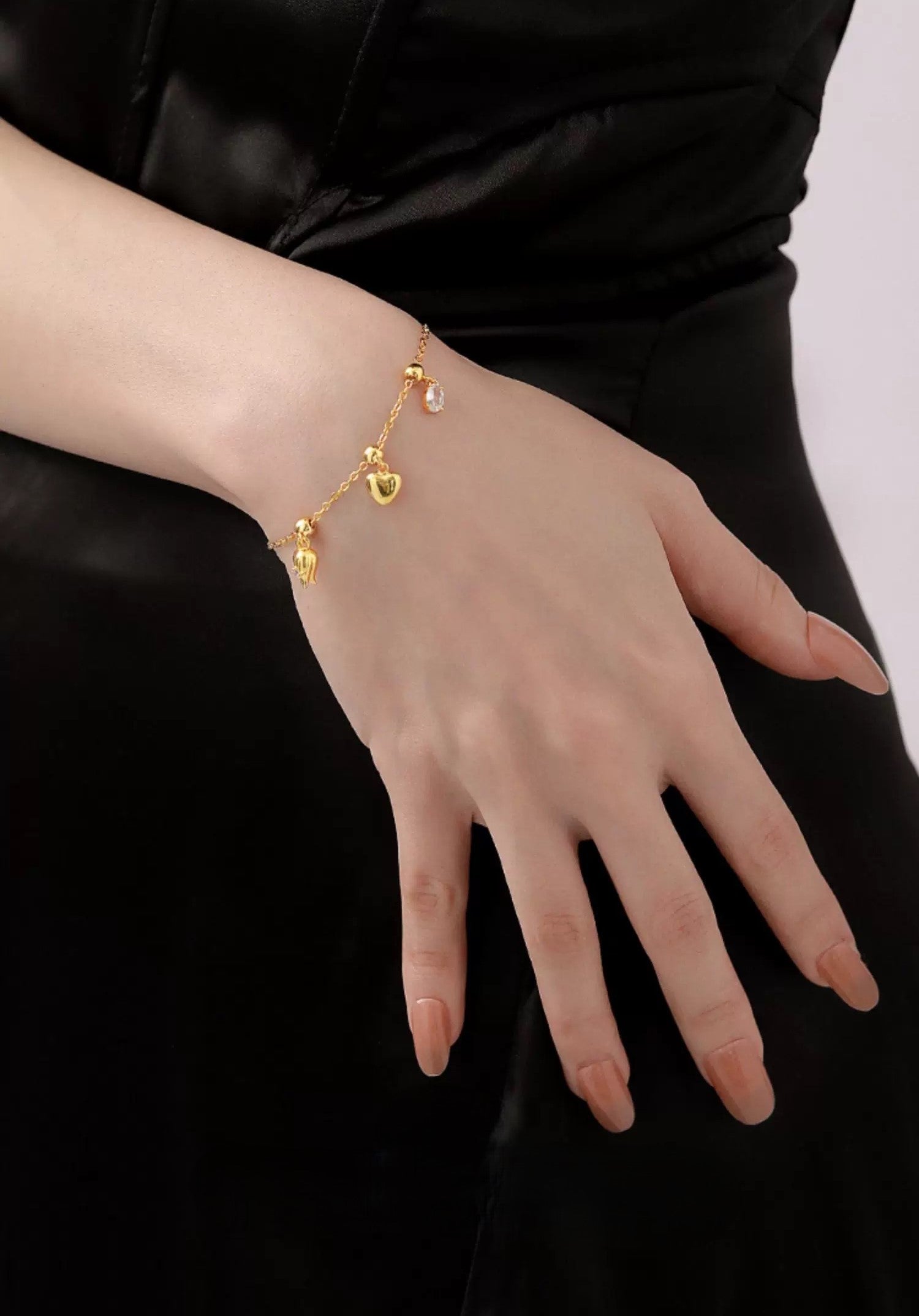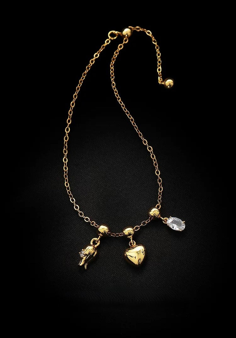 Yeryüzünün elementlerini simgeleyen üç farklı kolye ucuna sahip bu altın bilezikle doğanın güzelliğini keşfedin. Doğanın uyumunun özünü yakalayan çarpıcı bir tasarım.